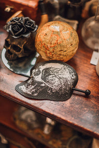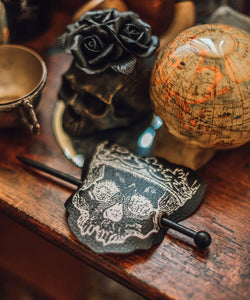 Pasador de pelo de cuero vegano con forma de calavera con corona