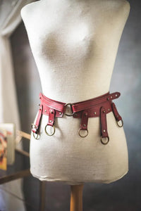 • Cinturon Rojo de cuero con tiras y aros Circus